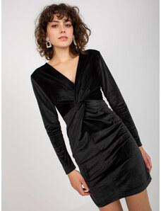 RUE PARIS Čierne velúrové šaty Alice so zavinovacím výstrihom WN-SK-461.02X-black