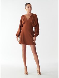 Bonprix Krátke šaty z padavej viskózy, farba hnedá