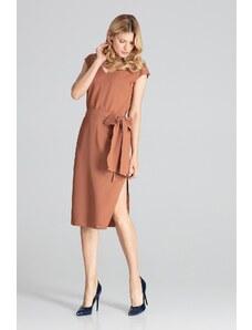 FIGL Elegantné šaty s opaskom M674 Brown
