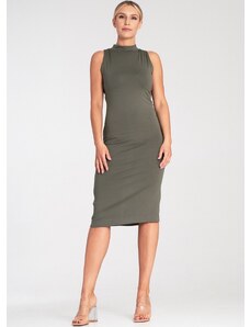 FIGL Olivové vypasované viskózové šaty bez rukávov M1031 Olive