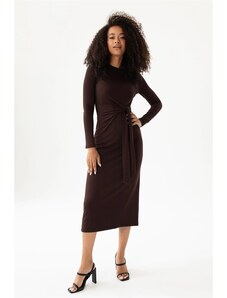 FIGL Dámske hnedé vypasované viskózové šaty M1078 Brown