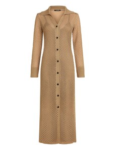 BASIC Béžové pletené šaty s výstrihom a retiazkou na chrbte -NM-SK-NG-2307.11X-beige