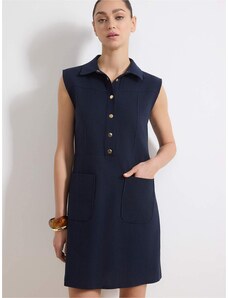 LENITIF Tmavo modré šaty so zapínaním pri krku L001