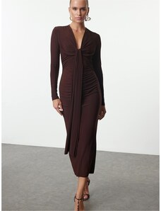 LENITIF Elegantné šaty s výstrihom do V L039 Brown