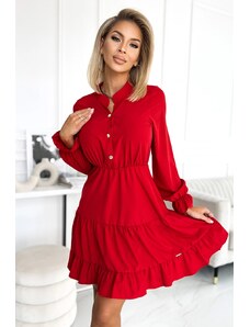 NUMOCO Červené šaty s volánikmi a zlatými gombíkmi ELISS 395-1