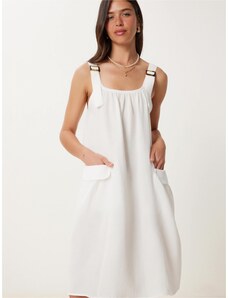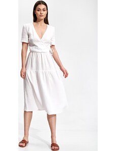 MARKO COLLECTION Biela dlhá plážová tunika na plavky so stiahnutím Dora Bianco M-443 (1)
