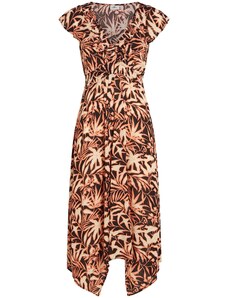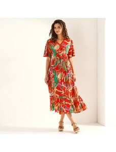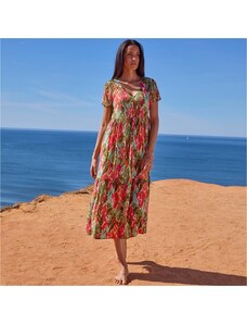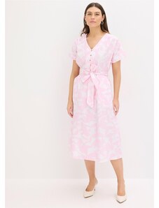 Krepónové midi šaty s výstrihom do V a pestrou potlačou khaki/ružová 054 Blancheporte