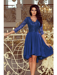 NUMOCO Modré šifónové šaty s čipkovým výstrihom ALEXIS 381-3