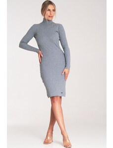FIGL Sivé dámske bavlnené šaty s dlhým rukávom M1042 grey