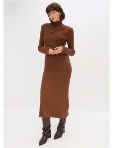 Bonprix Jemne pletené maxi šaty z padavého viskózového mixu, farba hnedá