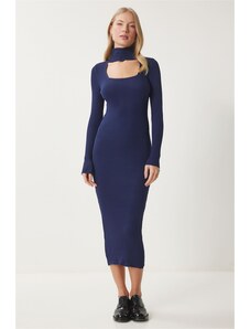 Dámske svetrové šaty s vysokým golierom M635 - Moe