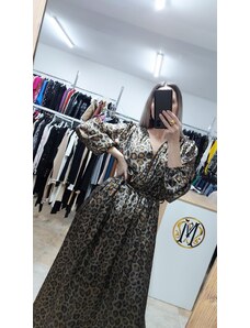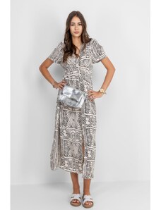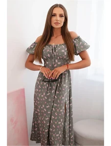 K-Fashion Dámske maxi šaty s kvetmi a lopatkami khaki
