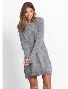 Bonprix Pletené šaty, oversized, zo ženilky, farba šedá