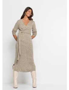 Bonprix Pletené šaty, oversize, midi dĺžka, farba béžová