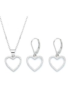 MAJYA Strieborný set šperkov SRDCE náušnice a retiazka s príveskom 10134