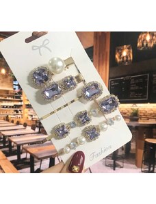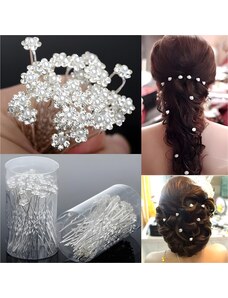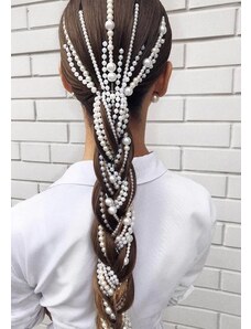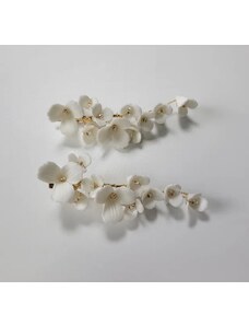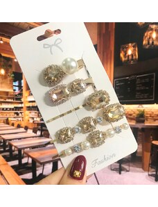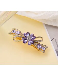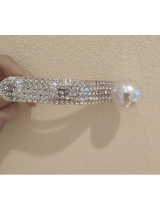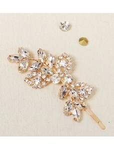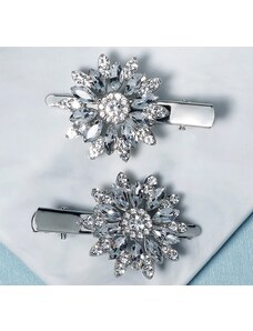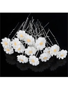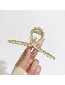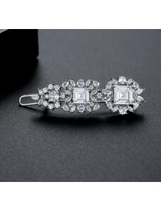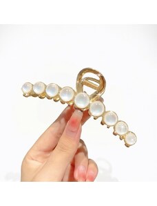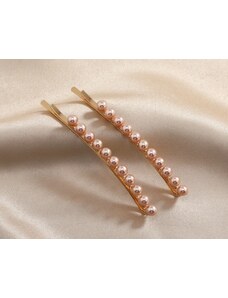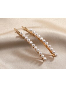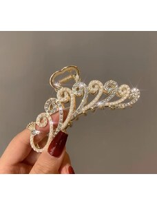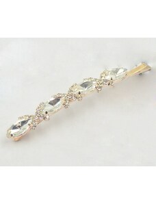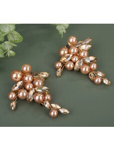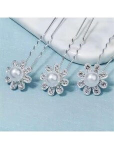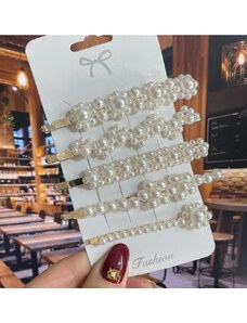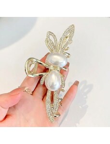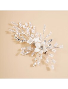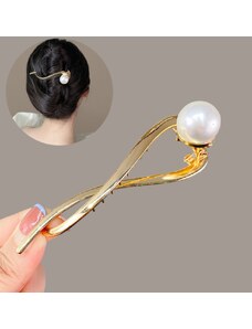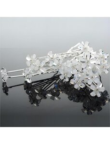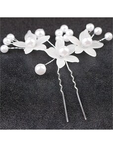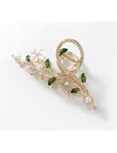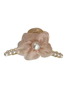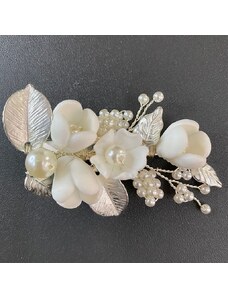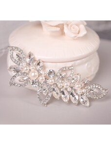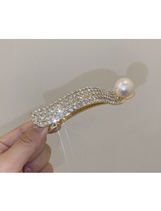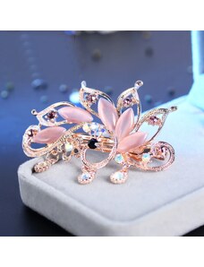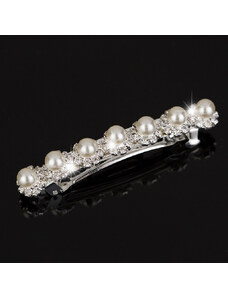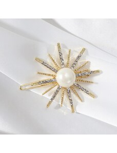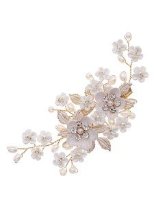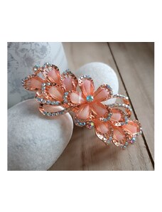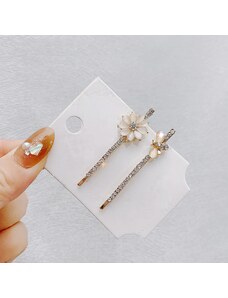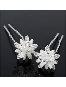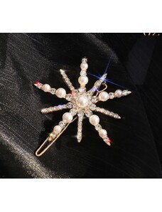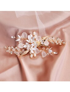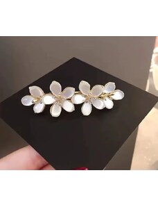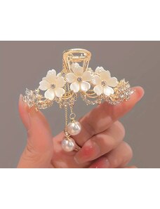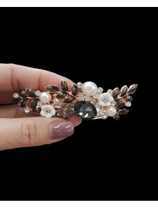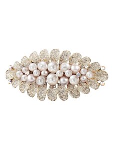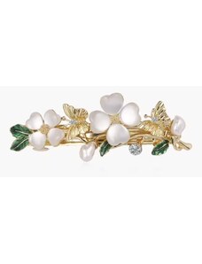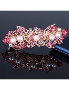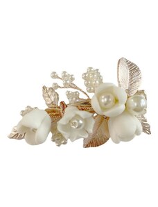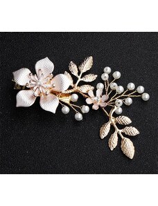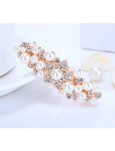 B-TOP Luxusná vlasová spona s perlami a kamienkami KVET - biela / zlatá ružová