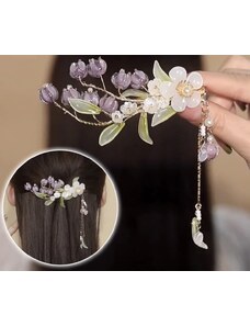 B-TOP Dámska vlasová ihlica s kvetinou a strapcami – elegantná orientálna ozdoba do vlasov