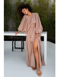 Happiness İstanbul Sukňa béžová / svetlomodrá / gaštanová / oranžová