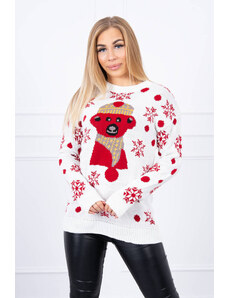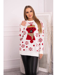 MladaModa Vianočný sveter s medvedíkom model 2021-19 červený