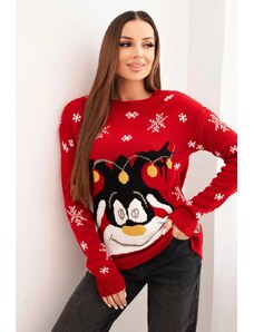 ITALY MODA Červený dámsky vianočný sveter MI-SW-19128.34-RED