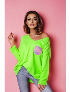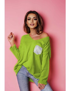 Fashionweek Sveter oversize s výstrihom s perleťovou niťou NB82227