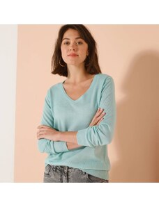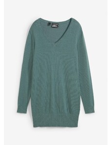 Dlhý pulóver s hladkým vzorom a výstrihom do V svetlozelená 056 Blancheporte