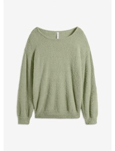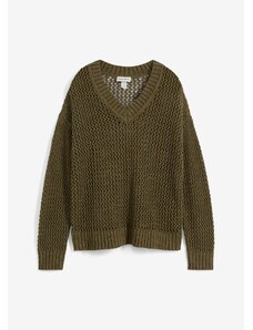 Bonprix Ažúrový pulóver z ľahkého pláteného mixu, farba zelená