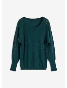 Bonprix Jemne pletený pulóver so štrasovou aplikáciou, farba zelená