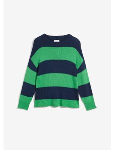 Bonprix Jemne pletený pulóver so širokými pásikmi, s okrúhlym výstrihom, farba zelená