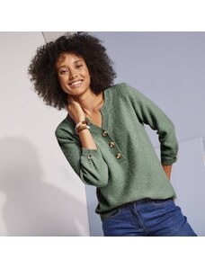 Pulóver s výstrihom na gombíky a 3/4 rukávmi khaki 054 Blancheporte