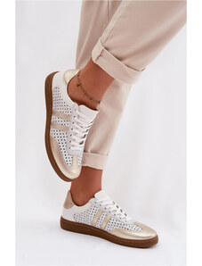 Kesi Strieborno/zlaté dámske kožené perforované tenisky Zazoo