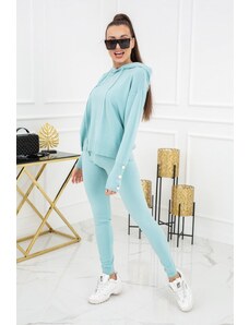 Vittoria Ventini Dámska súprava s kapucňou pletená Kim Pearl Buttons mätová, Farba mätová
