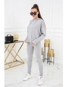 Vittoria Ventini Dámska súprava s kapucňou pletená Kim Pearl Buttons sivá, Farba sivá