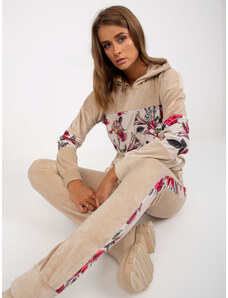 RUE PARIS Béžová velúrová súprava s kvetinovými vsadkami RV-KMPL-8234.35X-beige