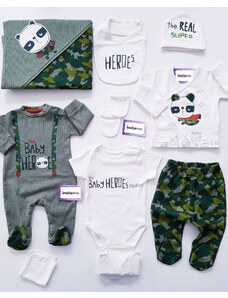 Kesi Dámska súprava s kapucňou a maskáčovou potlačou khaki + ecru