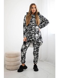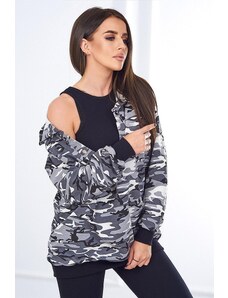 MladaModa 3-dielna súprava maskáčovej mikiny, topu a legín model 9615 šedá + čierna
