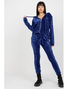 MladaModa Velúrová tepláková súprava so zipsom model 87231 námornícka modrá
