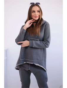 MladaModa Tepláková súprava s asymetrickou mikinou model 9365 grafitová