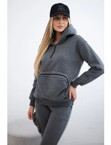 MladaModa Zateplená tepláková súprava s veľkým vreckom model 9324 grafitová melanž