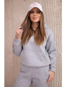 MladaModa Zateplená tepláková súprava s veľkým vreckom model 9324 šedá