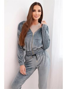 MladaModa Velúrová tepláková súprava so zipsom a kapucňou model 69477 šedá