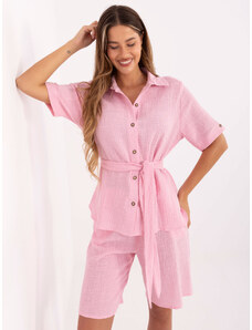 BASIC Svetloružový letný dámsky komplet s kimonovou košeľou a kraťasmi LK-KMPL-510072.68-light pink