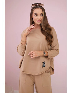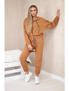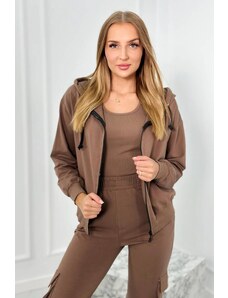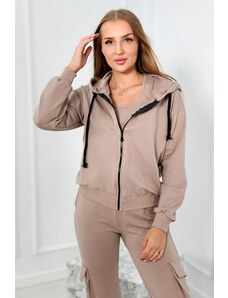 MladaModa 3-dielna súprava mikiny, topu a teplákov model 9588 farba mocca