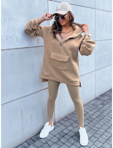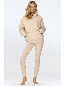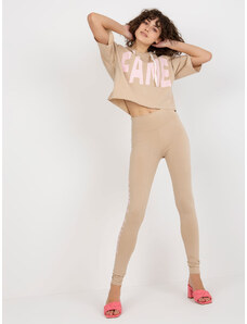 MladaModa Bavlnený komplet mikiny klokanky s kapucňou a legín s vysokým pásom model PL12 béžový