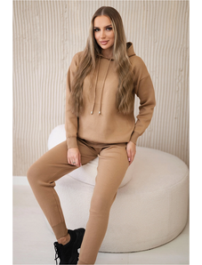 MladaModa Velúrová tepláková súprava s kapucňou model 28640 farba camel
