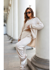 MladaModa Tepláková súprava s pruhmi na bokoch model 29752 béžová