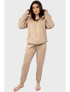MladaModa Zateplená tepláková súprava s veľkým vreckom model 9324 béžová