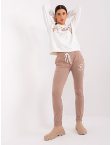 RELEVANCE Tmavobéžovo-biela tepláková súprava V-KMPL-9179.26-dark beige