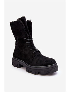 Boto Zamszowe Sznurowane Botki Workery Z Futerkiem Czarne Frendo