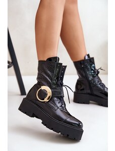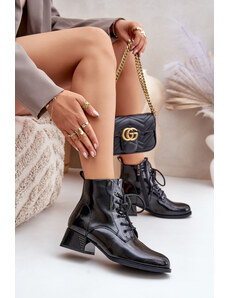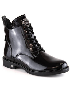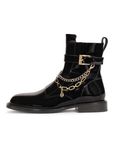 Boto Lakované Botky Pracovné Dámske So Zlatým Reťazcom Zateplené Čierne Sarinae